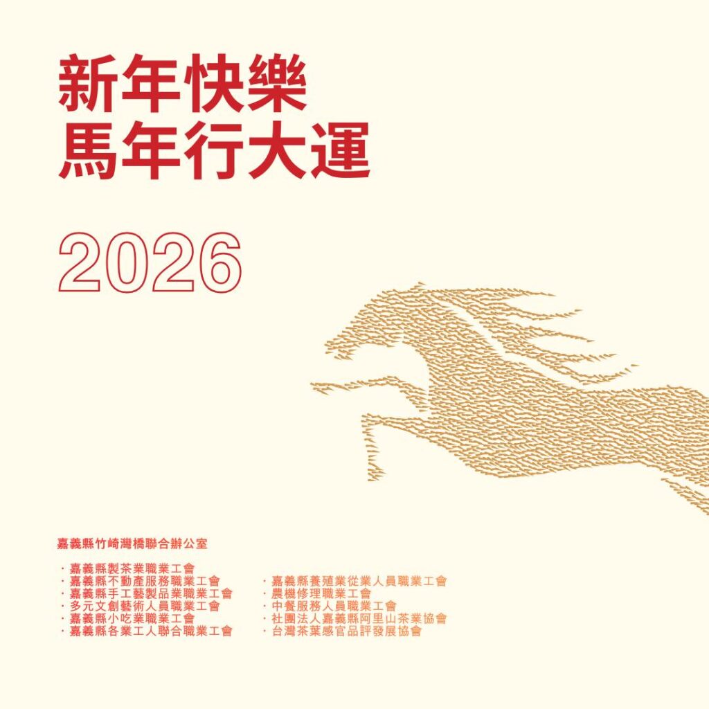 【嘉義縣竹崎灣橋聯合辦公室|預祝2026馬年新春】 / 2026 / 作者: 台灣茶葉感官品評發展協會 【嘉義縣竹崎灣橋聯合辦公室|預祝2026馬年新春】 新春佳節,萬象更新 ⠀值此農曆新年之際,嘉義縣竹崎灣橋聯合辦公室代全體單位,在此向大家獻上最誠摯的祝福:新的一年「平安健康常相伴、事業順利步步高、福氣滿滿迎春來」⠀感謝各界朋友一路的支持與鼓勵,未來我們也持續攜手努力,致力於各行各業及職人的發展、社會服務的共創共好。⠀再次恭祝大家「新春愉快、闔家安康、馬年行大運、馬到成功、福運奔騰」